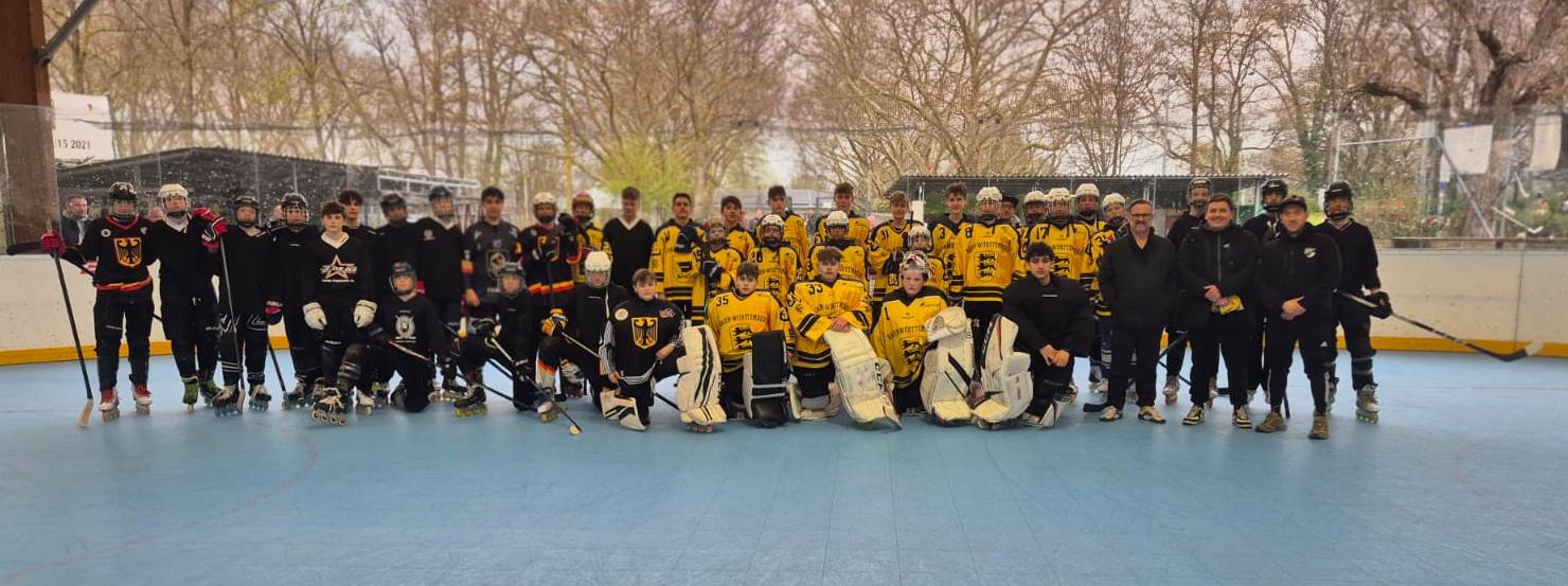Nach einer intensiven Trainingseinheit am Vormittag trat unsere Auswahlmannschaft gegen die U15 der deutschen Inlinehockey-Nationalmannschaft an. Gespielt wurde unter Inlinehockey-Bedingungen im Modus 4x15 Minuten, ohne Körpereinsatz und im Wechsel mit Ball und Puck (50/50).