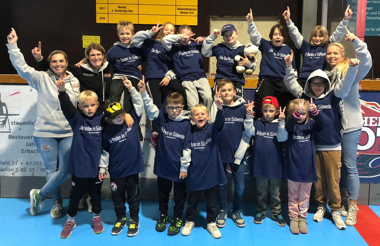 Beim letzten Bambinispieltag der Saison 2022 konnten sich die Rhein-Main Patriots in heimischer Halle behaupten und gewinnen die Südwestdeutsche Meisterschaft der Altersklasse U10 Bambini.